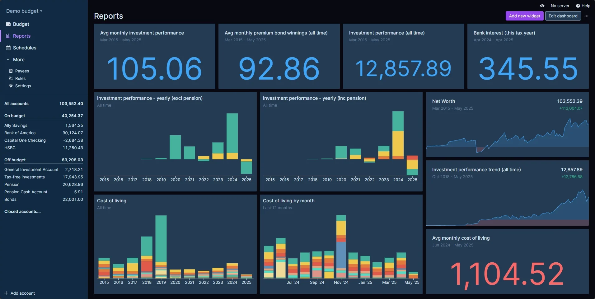 Add all of your accounts and track everything in one place. Get valuable information like net worth from all your accounts together. Learn more