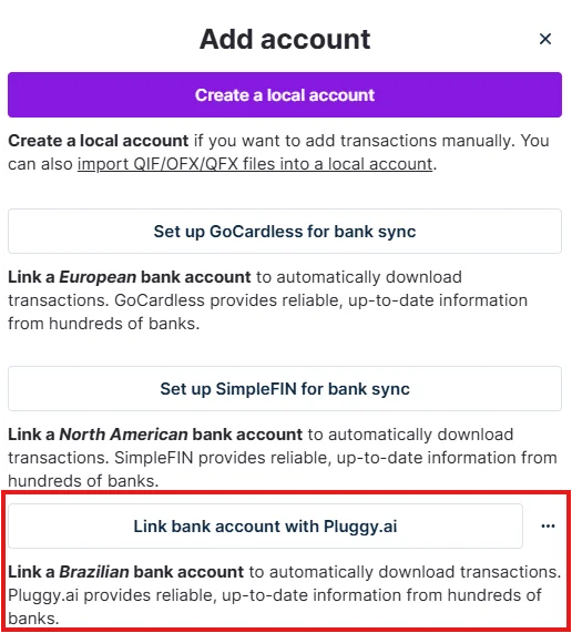 Select "Set-up Pluggy for bank-sync."